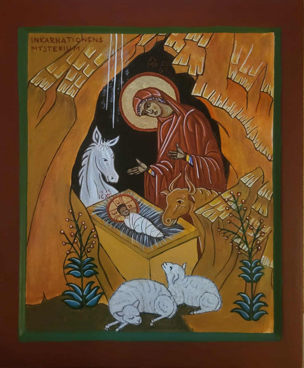 Idag blev jag klar med en ikon "Gud blev människa" "Inkarnationens Mysterium" från en ikonbild jag köpte vid Marievalls benediktinerkloster där en av nunnorna målar ikoner.
